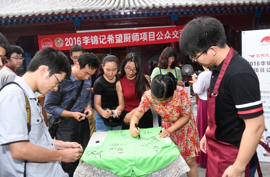 “希望廚師項目”是一個“授人以漁”的公益創(chuàng)新模式,創(chuàng)始于2011年,旨在幫助困境中的青年學廚圓夢,為中餐業(yè)發(fā)展培養(yǎng)未來之星。五年多來,“希望廚師”項目止已經捐資千萬,幫助了全國350多名困境青年。今年,又將有100名符合條件的有志青年在北京圓廚師夢。