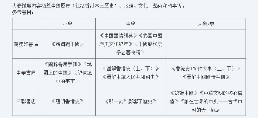 本屆大賽逾千條比賽題目由香港和內(nèi)地知名專家、學(xué)者等組成的評(píng)審委員會(huì)審定,范圍涵括中國(guó)歷史、地理、文化、藝術(shù)和時(shí)事等,包羅萬(wàn)有。在參加比賽的過(guò)程中,可提升學(xué)生對(duì)中國(guó)國(guó)情、歷史、文化及社會(huì)科學(xué)等方面的知識(shí)水平,培養(yǎng)學(xué)生常閱讀、多思考的良好學(xué)習(xí)習(xí)慣。
