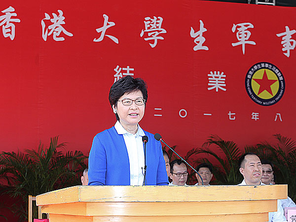 香港特別行政區(qū)行政長官林鄭月娥在典禮上表示,體驗(yàn)營為香港大學(xué)生提供一個(gè)寶貴的學(xué)習(xí)機(jī)會(huì),透過嚴(yán)格的軍事訓(xùn)練,同學(xué)們除了學(xué)會(huì)軍隊(duì)的基本知識(shí)和技能,體驗(yàn)軍人嚴(yán)格和規(guī)律的生活外,也能磨練出堅(jiān)強(qiáng)的意志,培養(yǎng)了自律、服從、團(tuán)結(jié)和刻苦耐勞的精神,日后為建設(shè)香港、報(bào)效國家作出貢獻(xiàn)。