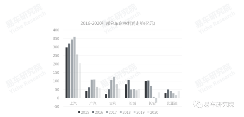 2015-2020年,上汽、廣汽、吉利等多數(shù)車企的凈利潤(rùn)呈現(xiàn)“過(guò)山車式”走勢(shì),2021-2026年,一旦廣大車企的新車銷售持續(xù)疲軟,培育新贏利點(diǎn)將迫在眉睫,目前發(fā)展穩(wěn)健的汽車金融項(xiàng)目自然會(huì)被寄予厚望。