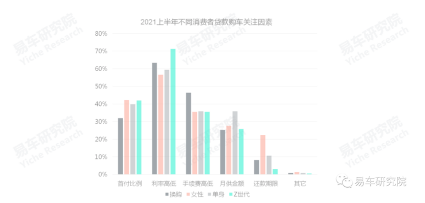 2021上半年,換購(gòu)、女性、單身、Z世代等消費(fèi)群體的貸款購(gòu)車意愿,都比較強(qiáng)烈;