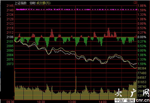 收盤:滬指跌1.58%失守2100點(diǎn) 權(quán)重疲軟