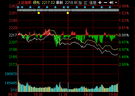 收盤:權(quán)重拖累 滬指重挫1.34%失守2200點(diǎn)