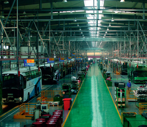 54歲的龐青年跟汽車著了十幾年的急,他試圖用并購努力拼出一個(gè)汽車王國的完整版圖。圖為青年汽車的客車生產(chǎn)車間。