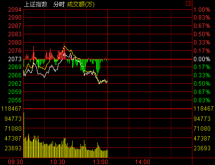 新華網(wǎng)消息 周三早盤兩市指數(shù)窄幅震蕩,深市表現(xiàn)較強,而創(chuàng)業(yè)板指數(shù)延續(xù)下跌走勢。盤中創(chuàng)投、移動支付、次新股等板塊走強。權(quán)重股依舊主導(dǎo)者市場的走勢,但今日金融股表現(xiàn)有所分化,券商、保險表現(xiàn)低迷,而銀行股護盤明顯。深強滬弱主要是深市權(quán)重釀酒板塊的大幅走高所致。從技術(shù)面的角度看,股指早盤回踩60日均線后向上反彈,但受到20日均線的壓制,后市能否突破2080點的壓制,依舊取決于權(quán)重板塊。