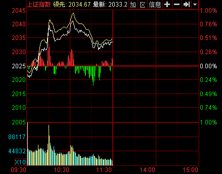 截至午盤,滬指報2033.25點,上漲8.30點,漲幅0.41%,成交335.71億元;深成指報7246.03點,上漲41.39點,漲幅0.57%,成交491.50億元;創(chuàng)業(yè)板指報1280.80點,上漲23.00點,漲幅1.83%,成交136.80億元。