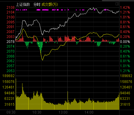 收盤(pán):滬指漲幅1.28%沖破2100點(diǎn) 金融地產(chǎn)崛起
