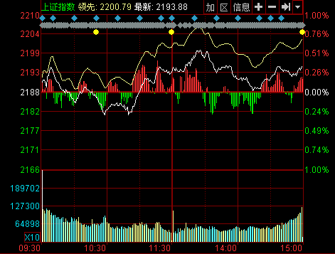 新華網(wǎng)消息 今日滬深兩市小幅高開,滬指圍繞2190點(diǎn)震蕩,截至午盤兩市雙雙收紅。全天兩市震蕩走高,滬指盤中一度沖擊2200點(diǎn)未果;深成指全天小幅震蕩,尾盤收紅。創(chuàng)業(yè)板方面,繼續(xù)高開高走,收盤漲幅超1%。成交量方面,兩市較昨日成交額均有所減少。