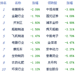 A股市場板塊及個股漲跌幅排行