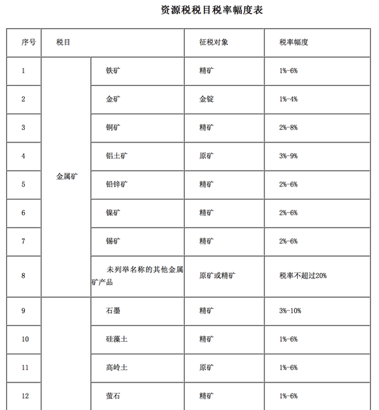 2.對未列舉名稱的其他金屬和非金屬礦產(chǎn)品,由省級人民政府根據(jù)實際情況確定具體稅目和適用稅率,報財政部、國家稅務總局備案。