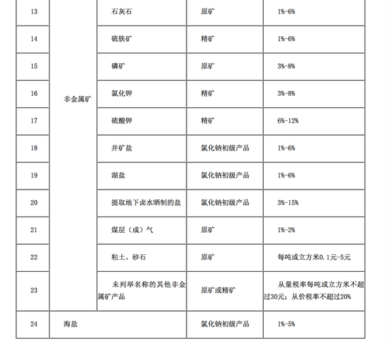 2.已實施從價計征的原油、天然氣、煤炭、稀土、鎢、鉬等6個資源品目資源稅政策暫不調整,仍按原辦法執(zhí)行。