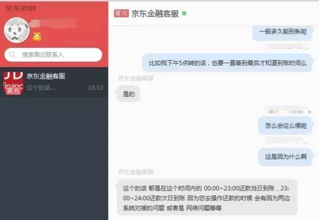 針對上述情況,京東金融客服表示,00:00-23:00還款當(dāng)日到賬,23:00-24:00還款次日到賬。“因?yàn)槟ゲ僮鬟款的時(shí)候,會有因?yàn)閮蛇呄到y(tǒng)對接的問題,或者是網(wǎng)絡(luò)問題等等。”