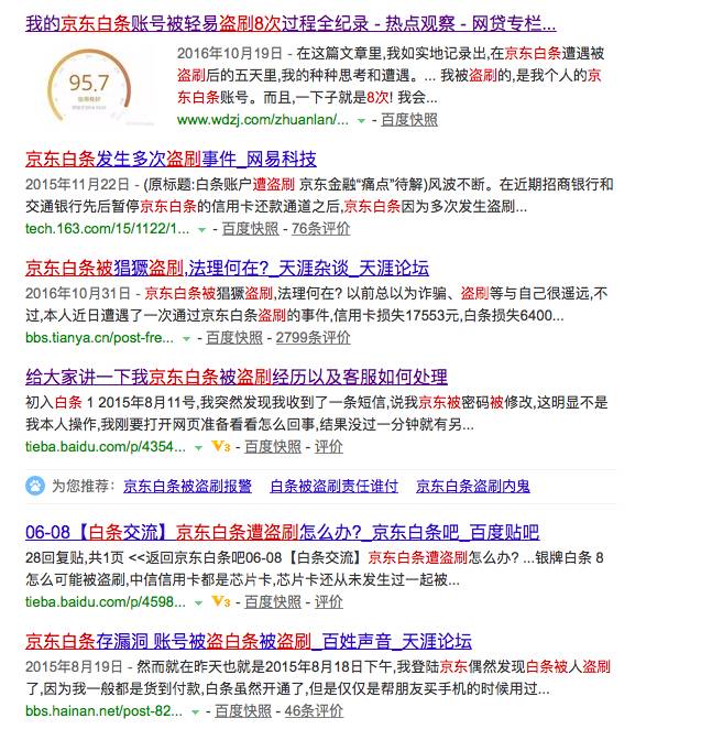 除了信用卡還款逾期,京東白條問題也成為京東金融亟待解決的痛點(diǎn)。在京東白條暫停信用卡還款通道之后,京東白條因?yàn)槎啻伟l(fā)生盜刷事件再次引起消費(fèi)者對京東金融賬戶安全性以及風(fēng)險(xiǎn)甄別能力的質(zhì)疑。2017年2月4日,據(jù)北方網(wǎng)報(bào)道,天津市民張女士此前手機(jī)被莫名設(shè)置了呼叫轉(zhuǎn)移,而她的京東商城的白條被人盜刷了一萬余元。因在春節(jié)長假期間,快點(diǎn)未能正常發(fā)貨,張女士訂單取消,挽回了自己的損失。