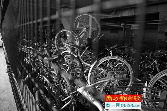 前日,深圳南山區(qū)歐環(huán)路橋底的南山區(qū)公共自行車(chē)倉(cāng)庫(kù)調(diào)度中心,大量共享單車(chē)被鎖住。南都記者 趙炎雄 攝