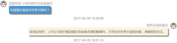 另外,去年以來,樂時拖欠供應(yīng)商資金的消息也一直傳得沸沸揚揚,有投資者問:“樂視現(xiàn)在真是對外界欠錢嗎?”
