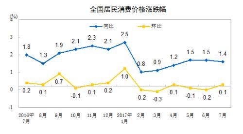 數(shù)據(jù)顯示,7月份CPI上漲1.4%,漲幅比上月回落0.1個百分點。記者注意到,CPI漲幅自2月份開始已經(jīng)連續(xù)6個月低于2%。