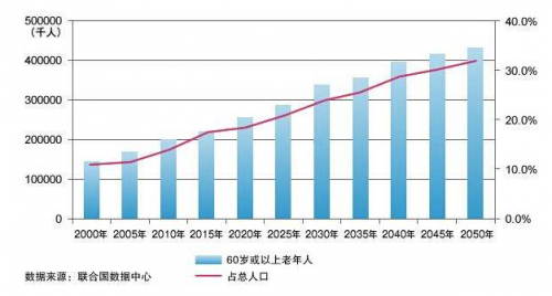 國務(wù)院公布的老齡事業(yè)發(fā)展和養(yǎng)老體系建設(shè)規(guī)劃預(yù)測,到2020年,全國60歲以上老年人口將增至約2.55億,獨居和空巢老年人將增至約1.18億。一般認(rèn)為,老年人口占10%,即意味著進(jìn)入老齡化社會了,而預(yù)計到2050年,我國老年人口將達(dá)峰值4.87億,占總?cè)丝诘?4.9%。