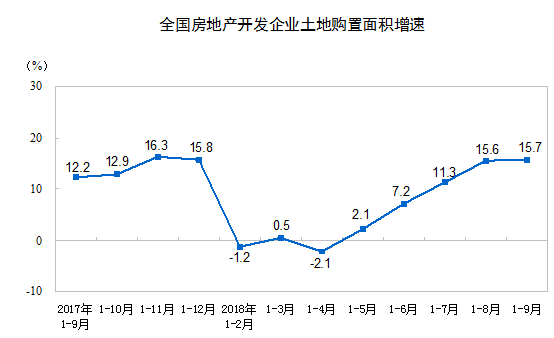 1-9月份,房地產(chǎn)開發(fā)企業(yè)土地購(gòu)置面積19366萬(wàn)平方米,同比增長(zhǎng)15.7%,增速比1-8月份提高0.1個(gè)百分點(diǎn);土地成交價(jià)款10002億元,增長(zhǎng)22.7%,增速回落1個(gè)百分點(diǎn)。