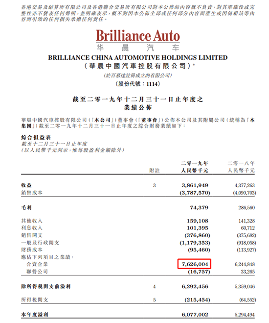 華晨中國業(yè)績毫不遜色,2019年,盡管華晨中國營業(yè)收入僅為38.62億元,但受益于合資企業(yè)的優(yōu)異表現(xiàn),其凈利潤高達(dá)60.77億元,同比增長14.97%。