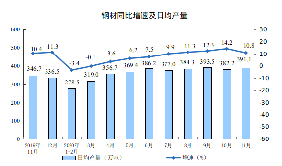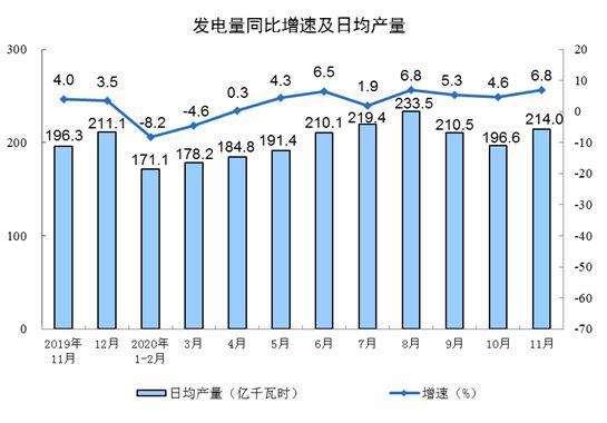 分產(chǎn)品看,11月份,612種產(chǎn)品中有439種產(chǎn)品同比增長。鋼材11734萬噸,同比增長10.8%;水泥24330萬噸,增長7.7%;十種有色金屬549萬噸,增長6.1%;乙烯198萬噸,增長11.6%;汽車278.3萬輛,增長8.1%,其中,新能源汽車20.7萬輛,增長99.0%;發(fā)電量6419億千瓦時(shí),增長6.8%;原油加工量5835萬噸,增長3.2%。