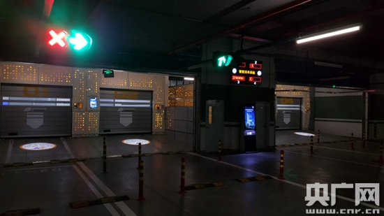 想讓機(jī)器幫你停車,要先把車開進(jìn)泊車口。記者看到,泊車口兩端都有鋁制閘門,樣子就像科幻電影里太空飛船的停機(jī)庫(kù)。