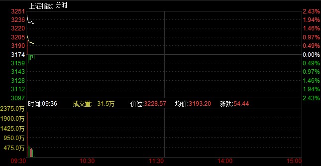 開盤:兩市雙雙高開滬指漲2.43% 金融股活躍