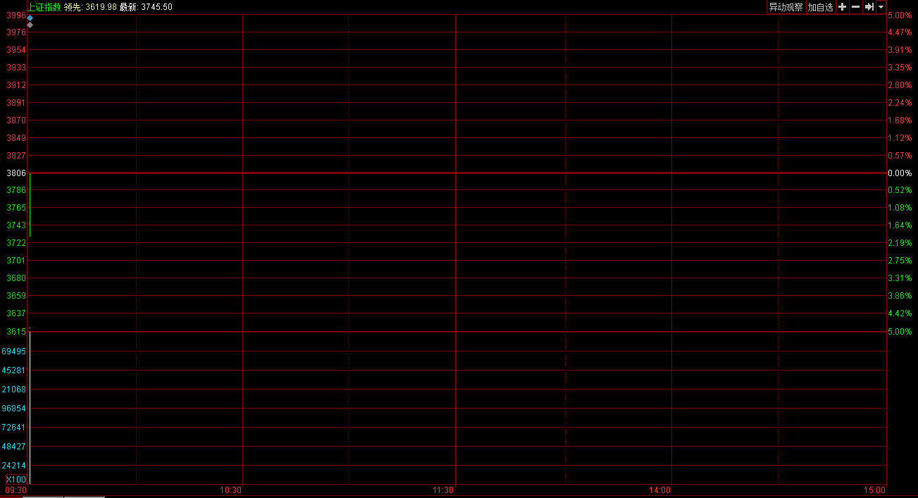 央廣網(wǎng)北京7月16日消息 據(jù)經(jīng)濟之聲《交易實況》報道,今日早盤,兩市雙雙低開,滬指跌1.24%,截止開盤,滬指報3758.50點,跌47.20點,跌幅1.24%,成交260億,深成指報11963.35點,跌169.07點,漲幅1.39%,成交283億,創(chuàng)業(yè)板報2526.65點,跌63.38點,跌幅2.45%。