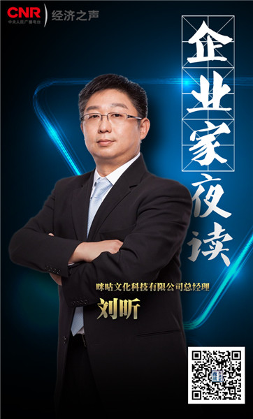 導(dǎo)讀:2018年,中央人民廣播電臺經(jīng)濟(jì)之聲全新推出《企業(yè)家夜讀》,這是一檔面對企業(yè)家群體及關(guān)心關(guān)注這個(gè)群體朋友們的閱讀朗讀節(jié)目。每周日晚九點(diǎn),我們都會相聚在電波里。今天做客《企業(yè)家夜讀》的,是咪咕文化科技有限公司總經(jīng)理劉昕。