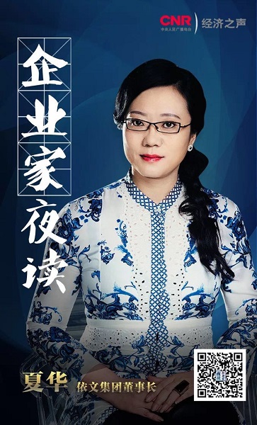 導(dǎo)讀:2018年,中央廣播電視總臺(tái)經(jīng)濟(jì)之聲全新推出《企業(yè)家夜讀》,這是一檔面對(duì)企業(yè)家群體及關(guān)心關(guān)注這個(gè)群體朋友們的閱讀朗讀節(jié)目。每周日晚九點(diǎn),我們都會(huì)相聚在電波里。本期做客《企業(yè)家夜讀》的,是依文集團(tuán)董事長夏華。