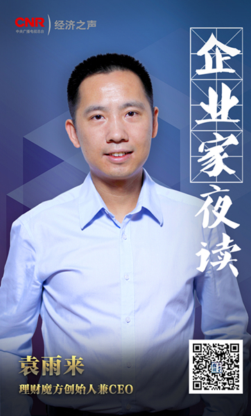 導(dǎo)讀:2018年,中央廣播電視總臺經(jīng)濟(jì)之聲全新推出《企業(yè)家夜讀》,這是一檔面對企業(yè)家群體及關(guān)心關(guān)注這個群體朋友們的閱讀朗讀節(jié)目。每周日晚九點(diǎn),我們都會相聚在電波里。本期做客《企業(yè)家夜讀》的是理財(cái)魔方創(chuàng)始人兼CEO袁雨來。