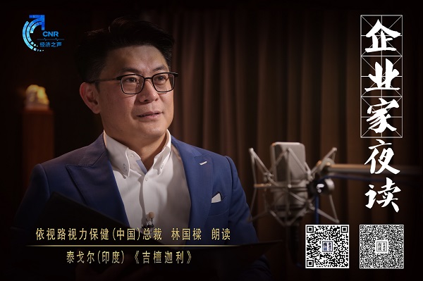 導讀:《企業(yè)家夜讀》是一檔面對企業(yè)家群體及關心、關注這個群體朋友們的閱讀朗讀節(jié)目。每周六、日晚八點,我們都會相聚在電波里。本期《企業(yè)家夜讀》,依視路視力保健(中國)總裁林國樑朗讀了印度詩人泰戈爾的詩集《吉檀迦利》片段。