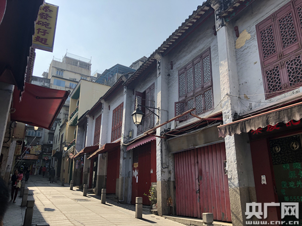 胡景光告訴記者,這里有澳門保存最完整的古建筑群。如今這里變成美食、手信一條街,四周建筑都已經(jīng)變了模樣,不過(guò)這里依然保留著上百年前的面貌!鞍拈T的古建筑可能是一棟、兩棟零星分布,這里是僅有的一條街古建筑!