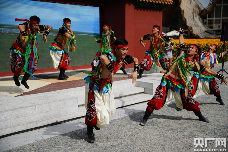 中國(guó)館紅墻小舞臺(tái)上,內(nèi)蒙古呼和浩特民族演藝集團(tuán)為各國(guó)游客帶來(lái)了民族舞蹈《頂碗舞》《蒙古族婚禮》《摔跤舞》、馬頭琴獨(dú)奏《萬(wàn)馬奔騰》、蒙古族長(zhǎng)調(diào)民歌《遼闊的草原》等精彩演出。熱情奔放的舞蹈、悠揚(yáng)的馬頭琴聲、意境開(kāi)闊的長(zhǎng)調(diào),贏得了觀眾的陣陣喝彩。