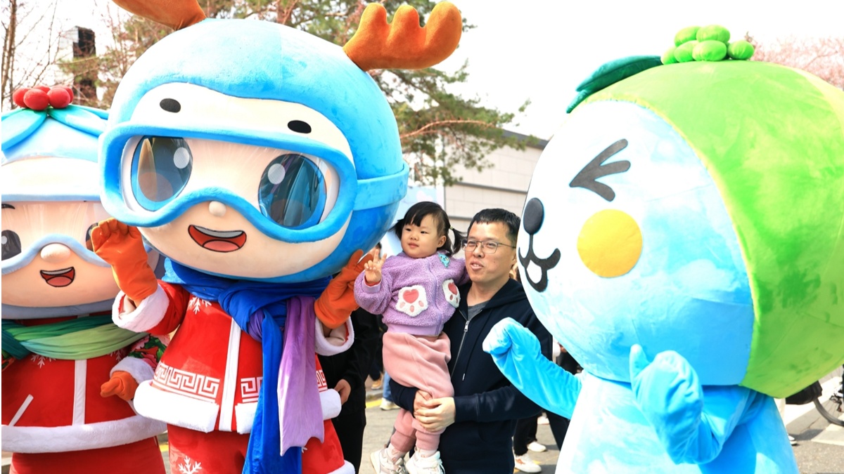 吉祥物與游客互動(央廣網(wǎng)發(fā) 郭明彤 攝)