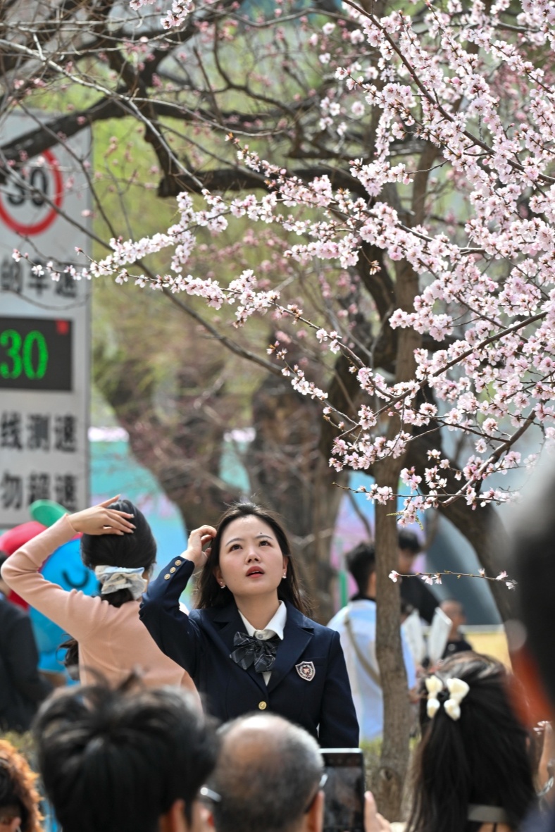 當(dāng)天,杏花大道上人山人海,游客們或駐足凝望,或選取最佳角度拍照打卡,濃郁的春日氣息撲面而來。這條見證了學(xué)校進(jìn)步與長春發(fā)展的杏花大道,自2016年首屆杏花文化節(jié)舉辦以來,已枝繁葉茂,成為大家爭相打卡的網(wǎng)紅地標(biāo)。