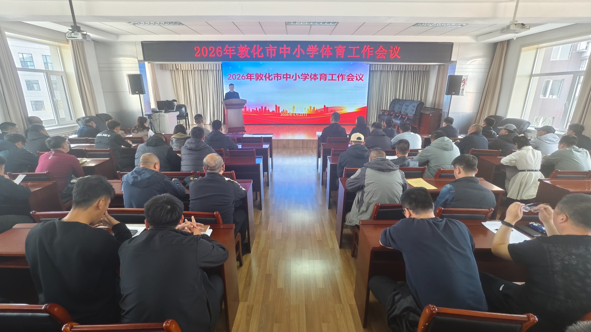 4月22日下午,敦化市2026年中小學體育工作會議在市教育局順利召開,市教育局分管領導、相關科室負責人、教師進修學校體育教研人員及全市各中小學分管副校長、體育教研組長、體育教師代表等130余人參會。