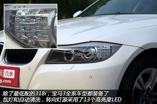 雖然320i不是寶馬3系的主打車型(325i是主力軍),但在配置上它也能對(duì)得起這個(gè)價(jià)格和品牌。除了最低配的318i外,其余車型全部標(biāo)配了氙氣大燈和大燈清洗。另外后視鏡也帶有電子防眩目功能。