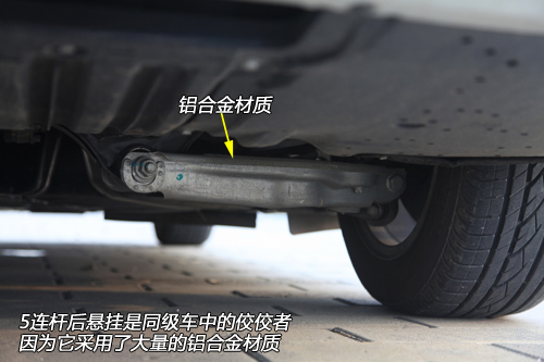 有一點(diǎn)比較意外,我們的這輛320i豪華型配備了時(shí)尚型的輪胎。整個(gè)尺寸完全是小了一圈,不說對(duì)性能的影響,從視覺效果上來看也與18英寸的差別很大。聊個(gè)題外話,這也是為什么很多人買了318i和320i時(shí)尚版后,專門再換成高配的18英寸輪胎的緣故——外觀不和諧。采用五連桿后懸掛的車不在少數(shù),但像3系一樣采用大量鋁合金的車可不多,它能有效減小簧下質(zhì)量,提升車輛性能。如果你不太理解減少的幾公斤能有多大影響,舉個(gè)例子或許你能明白:一個(gè)人身上背10公斤貨物和穿10公斤的鞋走路,哪個(gè)更輕松呢?