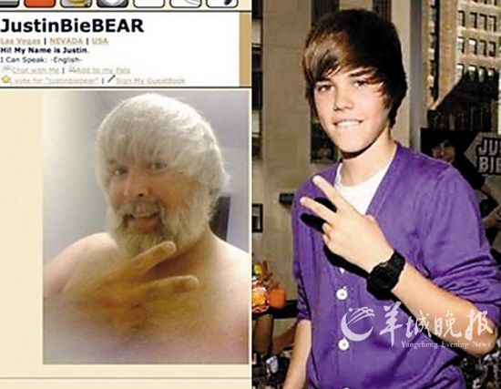 B寶日前在某電子產品廣告中打扮成老伯的造型,引起網友熱議。近日,現(xiàn)實生活中有一位老伯也梳著B寶的招牌發(fā)型,擺出他的招牌反手“勝利手勢”,相當有自信地說:“我覺得他(賈斯汀·比伯)30年后會很像我!”搞笑照片在網絡頻傳。
