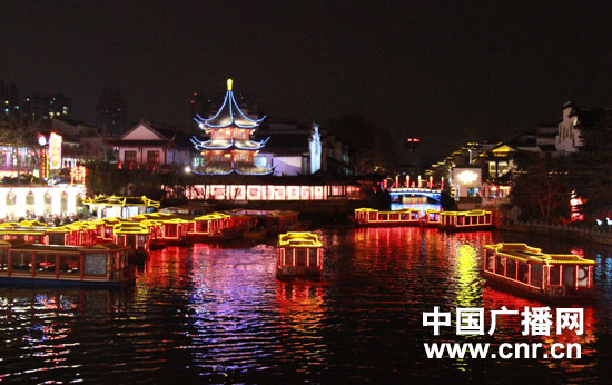 2012年元宵節(jié)期間秦淮河景區(qū)人頭攢動(dòng)。