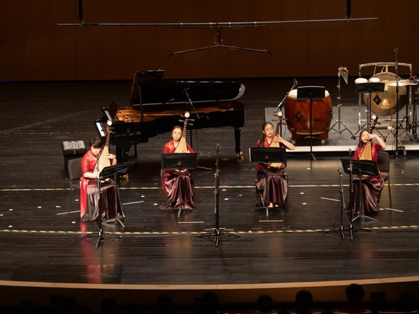 韓聞赫作曲的民族室內(nèi)樂(lè)《龍韻》首先開(kāi)場(chǎng),絲竹的韻意與現(xiàn)代音樂(lè)的律動(dòng)交相輝映,贊頌了“龍的傳人”偉大民族勤勞勇敢的品質(zhì)和砥礪奮進(jìn)的風(fēng)貌。羅麥朔作曲的《秋葉三則》、陳哲作曲的《蹀馬傾杯舞千秋》、江洋作曲的《青色煙雨》等樂(lè)曲展現(xiàn)了揚(yáng)琴、古箏、琵琶等中國(guó)民族樂(lè)器的豐富表現(xiàn)力。敖翔作曲的《如夢(mèng)》《踏月行歌》和景徐作曲的《竹思水墨五幀》(節(jié)選)等樂(lè)曲將三弦、笙和竹笛等民族樂(lè)器與鋼琴巧妙融合。曹鋮作曲的民族室內(nèi)樂(lè)《吳》以蘇州地方音樂(lè)為素材,描寫(xiě)了吳地的風(fēng)情。李霓霞作曲的民族室內(nèi)樂(lè)《聆雨》以豐富的樂(lè)器音響和多彩的音樂(lè)畫(huà)面將觀眾帶入了江南千姿百態(tài)的雨景之中。鄭光智作曲的民族室內(nèi)樂(lè)《雪霜薺麥》擷取了韓愈的《幽蘭操》,既表達(dá)了古代文人面對(duì)逆境時(shí)的堅(jiān)強(qiáng)剛毅,更展現(xiàn)出新時(shí)代中國(guó)民族音樂(lè)的特色與精神。