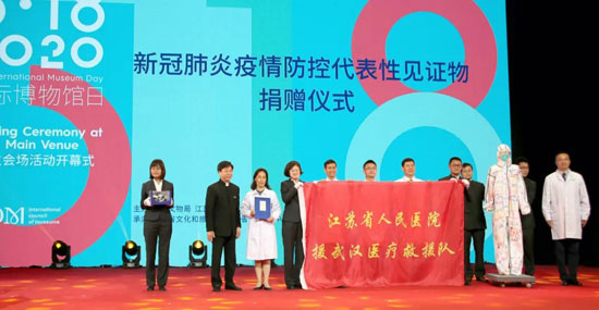 開幕式上,新華社、江蘇省人民醫(yī)院向南京博物院捐贈(zèng)了一批反映聚力助援抗疫的物證資料。2020年3月,南京博物院積極響應(yīng)國(guó)家文物局關(guān)于征集和保存新冠肺炎疫情防控代表性見證物的部署,向社會(huì)發(fā)布了《關(guān)于征集新冠肺炎疫情見證物的公告》,通過網(wǎng)絡(luò)途徑收集到郵件124件,其中以照片、音頻、書法和繪畫作品為主。同時(shí),在江蘇省衛(wèi)健委的支持和協(xié)調(diào)下,奮戰(zhàn)在抗疫一線的醫(yī)護(hù)人員踴躍捐贈(zèng),向南京博物院捐贈(zèng)了江蘇省援湖北醫(yī)療隊(duì)隊(duì)旗、隊(duì)員簽名防護(hù)服等一批抗“疫”代表性見證物。新華社江蘇分社向南京博物院捐贈(zèng)了照相機(jī)、AI智能錄音筆等新冠肺炎疫情防控代表性見證物。