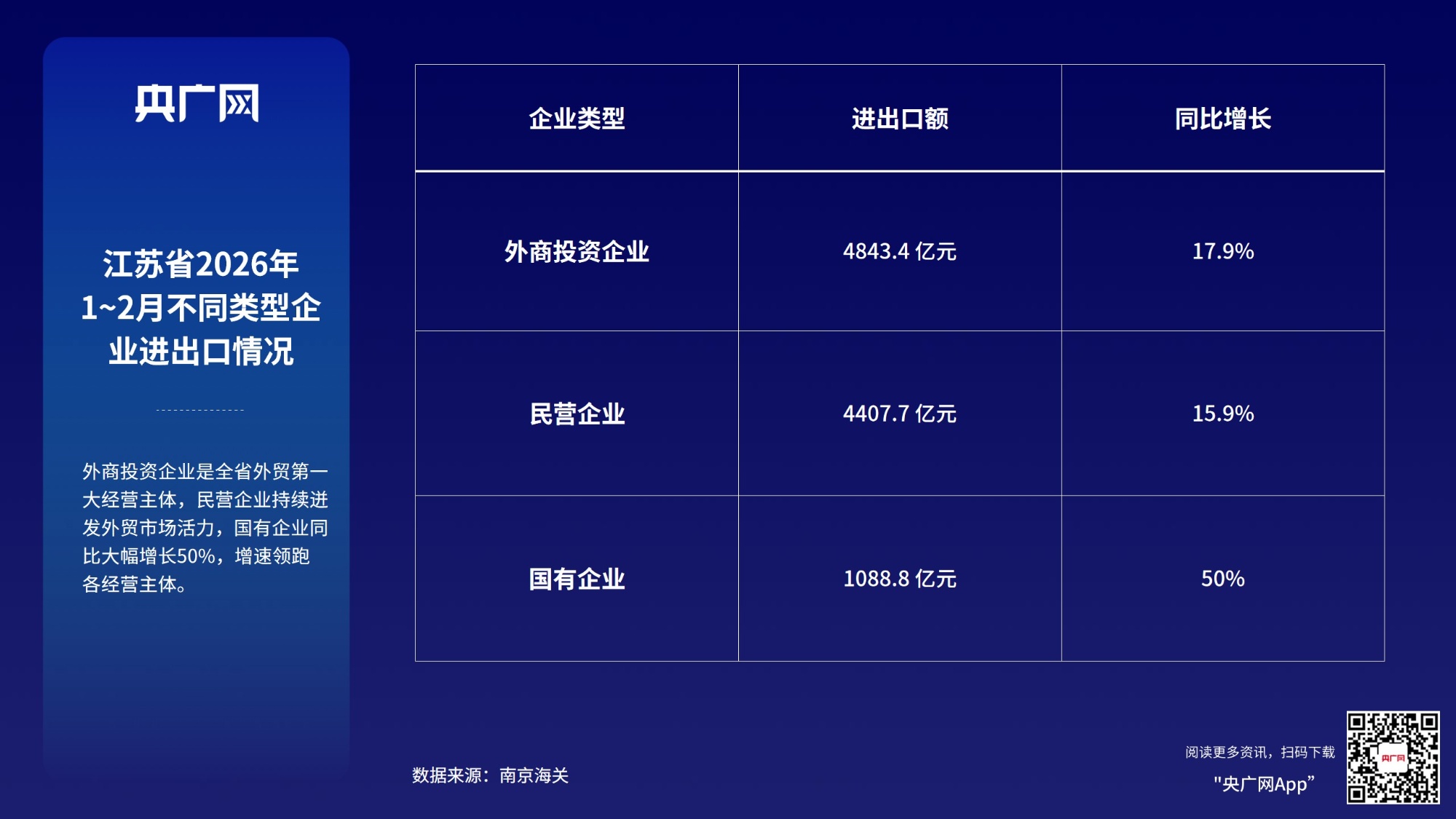 江蘇省2026年1~2月不同類型企業(yè)進出口情況(央廣網(wǎng)發(fā) 王宣宣制圖)
