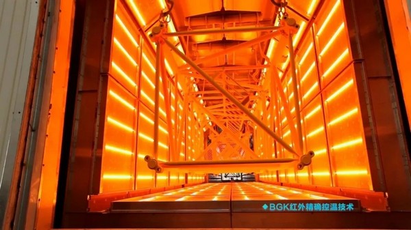 徐工塔機(jī)在行業(yè)內(nèi)率先推出整機(jī)涂裝最高標(biāo)準(zhǔn)——“2年不褪色,5年不銹蝕”,圖為行業(yè)內(nèi)首創(chuàng)環(huán)保靜電粉末涂裝線