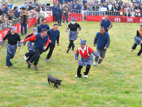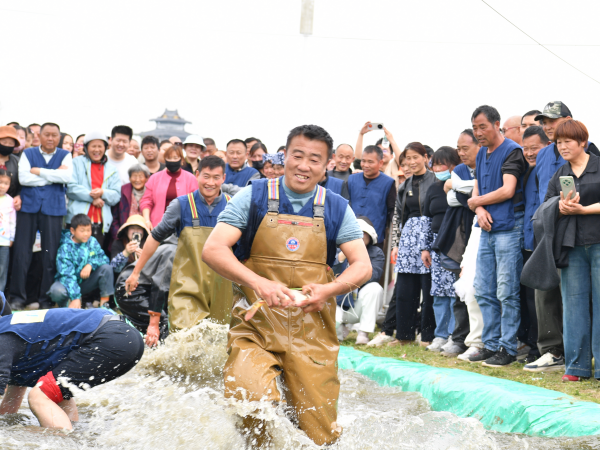 作為全場最“不可控”的項目,“快樂抓豬”一開始就把氣氛推向高潮——隨著主持人一聲令下,十名選手沖進場地,一頭小豬被追得滿場亂竄,引得圍觀的村民前仰后合;“豐收接力”同樣熱火朝天,農(nóng)民們雙手翻飛,玉米粒簌簌落下,沒過多久就把20根干玉米棒脫粒干凈;最熱鬧的當數(shù)“田園漁樂”,選手們跳進水池中,有的徒手抓魚,泥鰍滑溜溜地從指縫間溜走,有的整個人撲進水里,抱住一條大鯉魚高高舉起,岸上的加油聲一浪高過一浪……