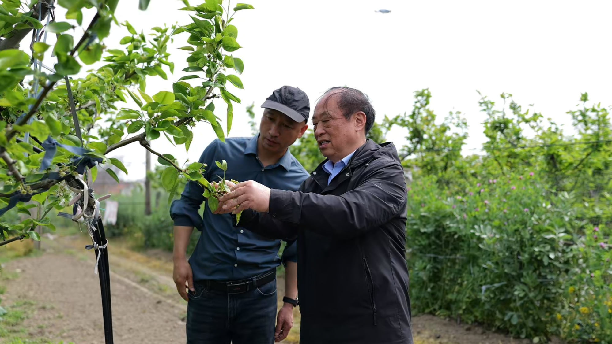 李明光(右)現(xiàn)場(chǎng)示范去老枝(央廣網(wǎng)記者 楊夢(mèng)奎 攝)