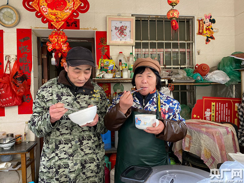 萬佐成夫婦錯(cuò)過飯點(diǎn)才吃上午飯(央廣網(wǎng)記者 謝元森 攝)