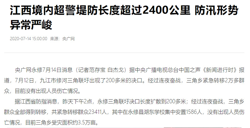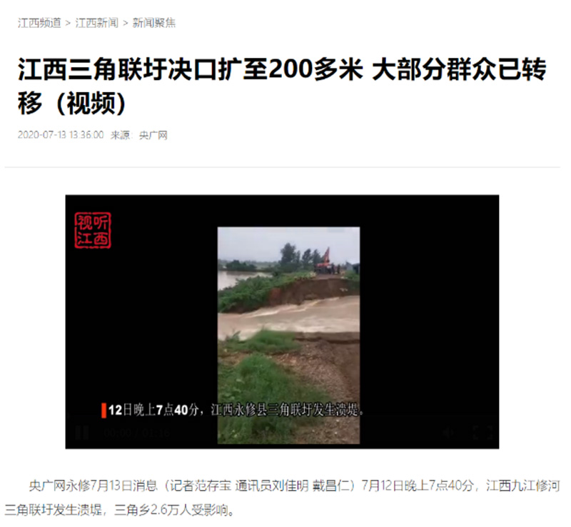 全媒體報道:江西三角聯(lián)圩決口擴至200多米 大部分群眾已轉(zhuǎn)移