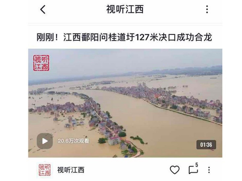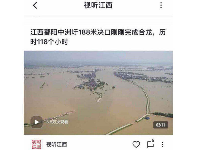 中央廣播電視總臺央廣2020江西抗洪報道“四個前所未有”