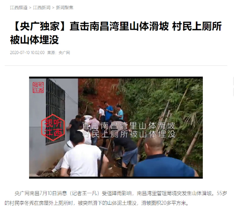 全媒體報道:直擊南昌灣里山體滑坡 村民上廁所被山體淹沒